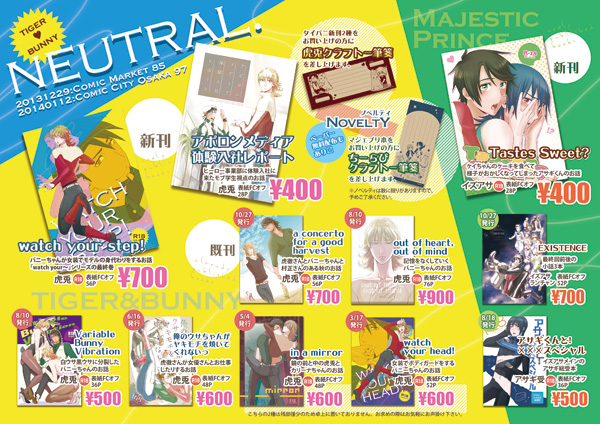 ラインナップはタイバニ虎兎2冊と、マジェプリイズアサ本となっております。