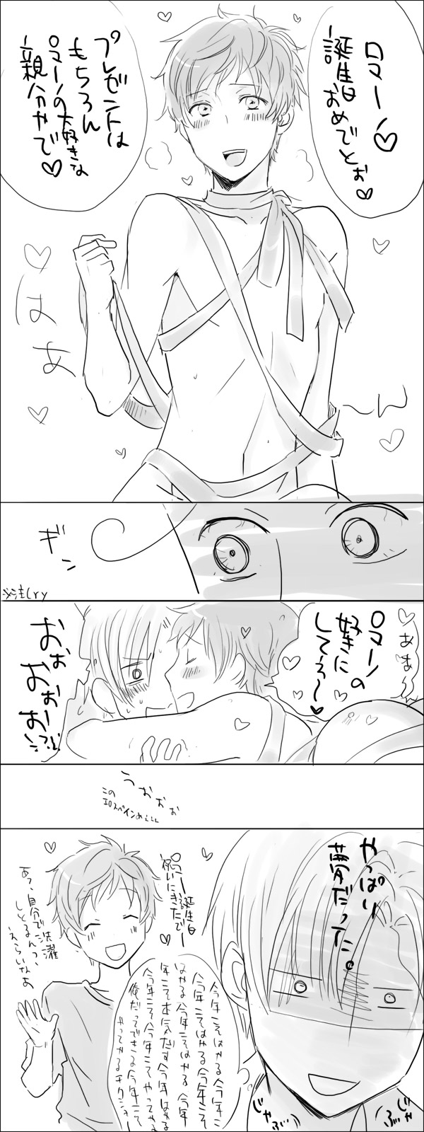 続きから、ロマ誕ロマ西まんがと、原稿中のらくがきなど。微妙に背後注意で。