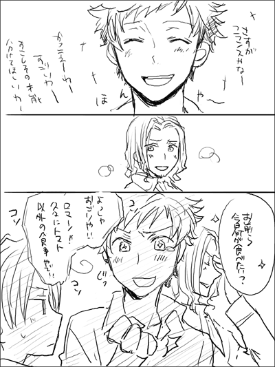 やっと悪友トリオかけた。らくがきのらくがきだけど。